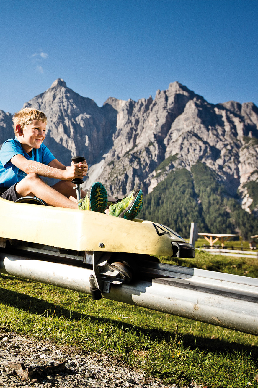 Wem es mit der Gondel oder zu Fuß ins Tal nicht schnell genug geht, der kann auch mit mehr Schwung bergab fahren. Die Sommerrodelbahn der Serlesbahnen ist das abschließende Highlight eines erlebnisreichen Tages am Berg. Na, wer ist am schnellsten unten?